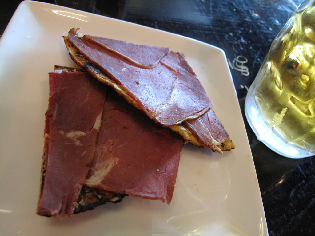 Hákarl is fermented Greenland shark or other sleeper shark which has been hung to dry for several months. It smells like ammonia, and it is definitely an acquired taste. The shark itself is poisonous when fresh due to its high content of uric acid. Anthony Bourdain says this is the worst thing he’s ever tasted.
