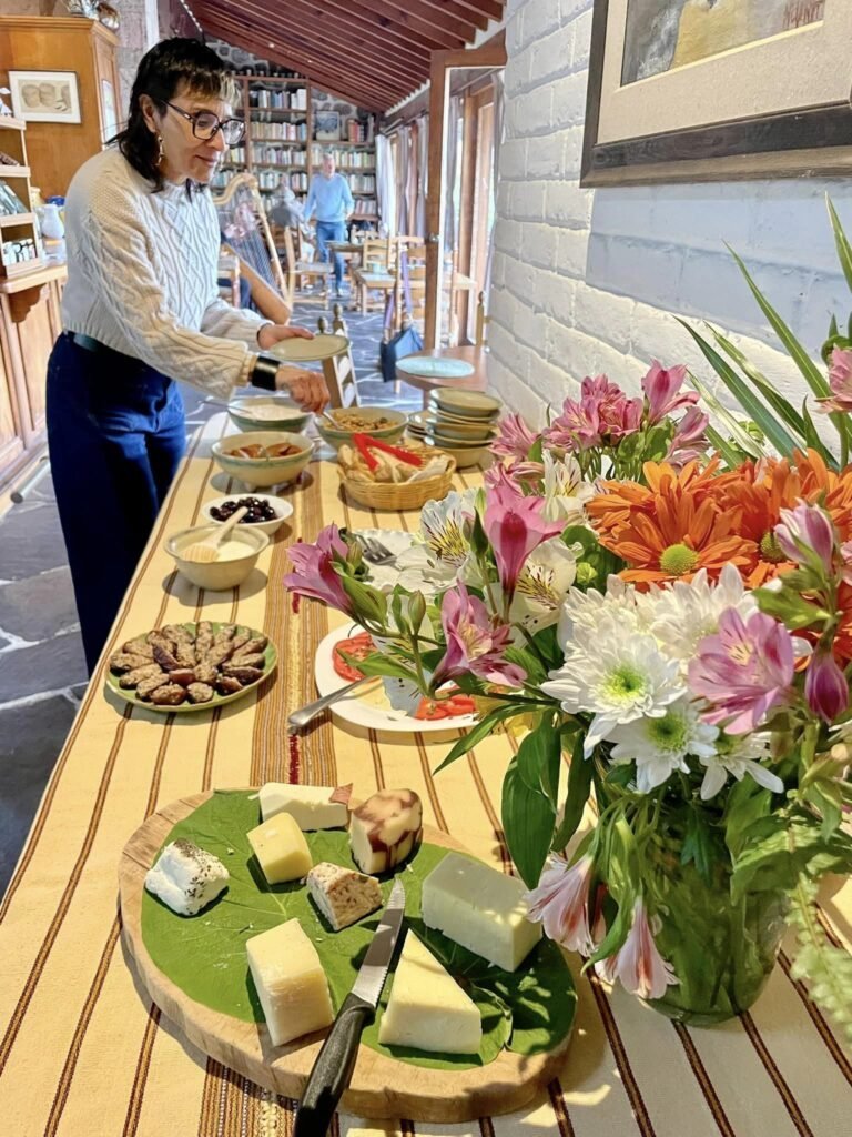 Posada Corazon is a magical world of a bed and breakfast where anyone can have breakfast. It’s best to make a reservation, and you have to get buzzed in, but what a fantasy this place is. It’s 250 pesos for everything during the week or 300 pesos on the weekend. The weekend includes a buffet of different cheeses, yogurt, and bread. We went on a Sunday, and there was a harpist there.