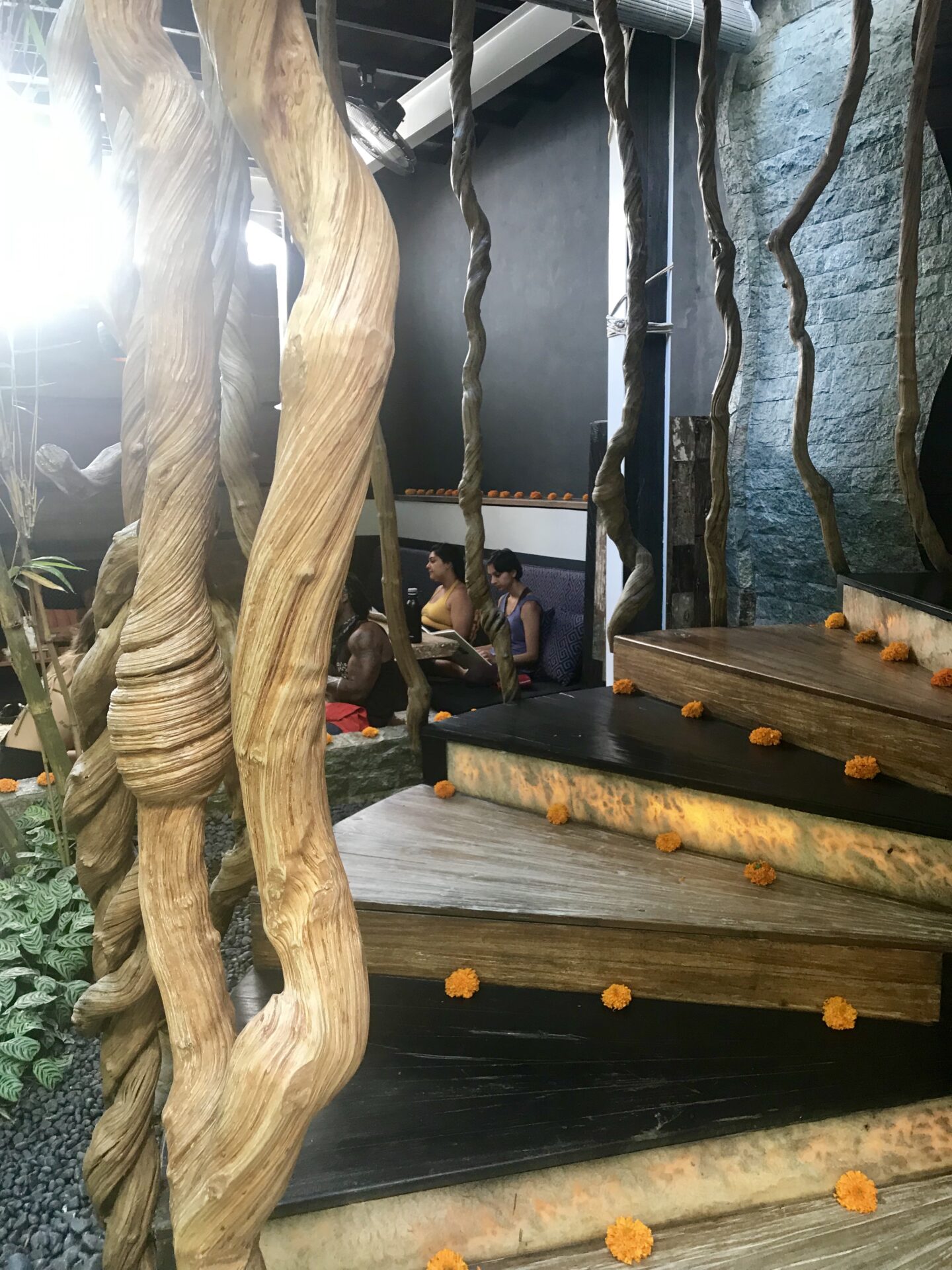 I had the softshell crab sandwich and sugarcane juice which also gave me the perfect sugary, salty lift to revive me. I may have had a mojito or two as well! Folk Pools serves breakfast, lunch, and dinner, so you could easily spend an entire day here. There’s also a swim-up bar and a seasonal twilight cinema. Make reservations for the private daybeds and teepees which there is a charge for. The poolside chairs and sofas are free, but best to still book in advance.