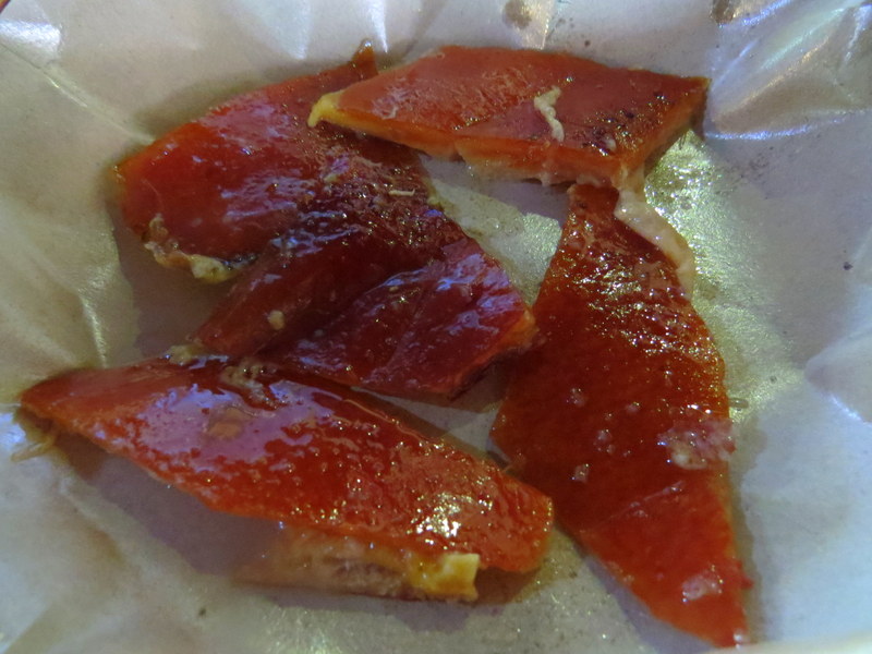 Ibu Oka’s fame has caused them to now open three locations. And, along with the expansion of the locations, unfortunately there has also been an expansion of price. The mixed sampler plate is 45,000 rupiah (about $3.70 USD) and 60,000 ($5 USD) for the plate of skin which is the truly decadent part. (I don’t think they give you enough with the main plate, so I like to order a plate of the skin on the side). With drinks, it can come to an expensive meal by Bali standards.