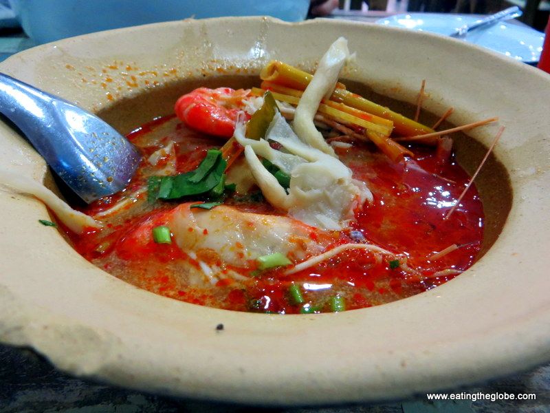 The wait wasn’t all bad, though. I got to watch the huge prawns being prepared for the tom yung goong I was about to eat from this famous Bangkok restaurant.