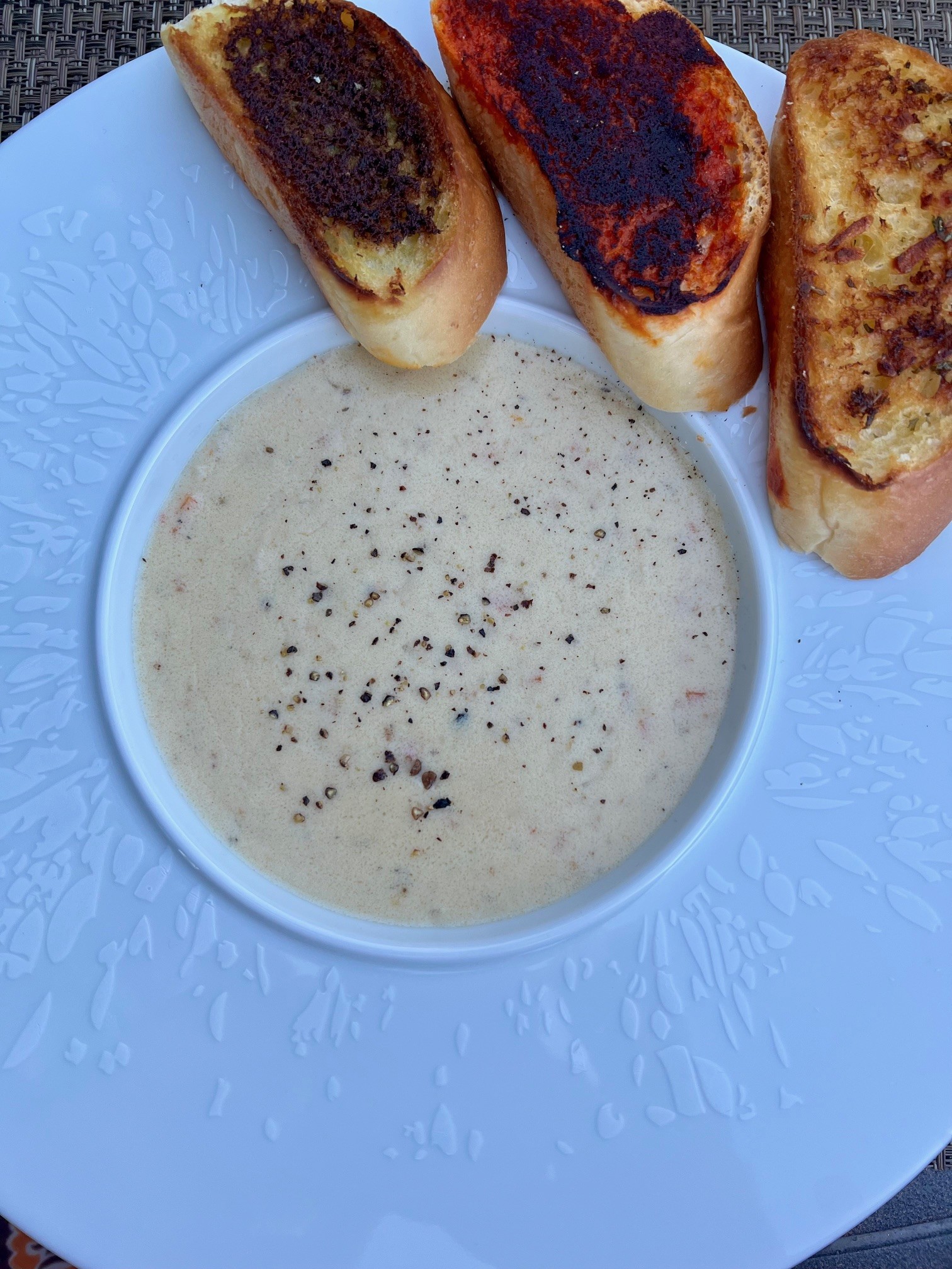 Don’t miss the passion fruit margarita and the fish with capers and lemon. The clam cream soup was also quite good. They also serve breakfast, but I ran out of time to try it.
